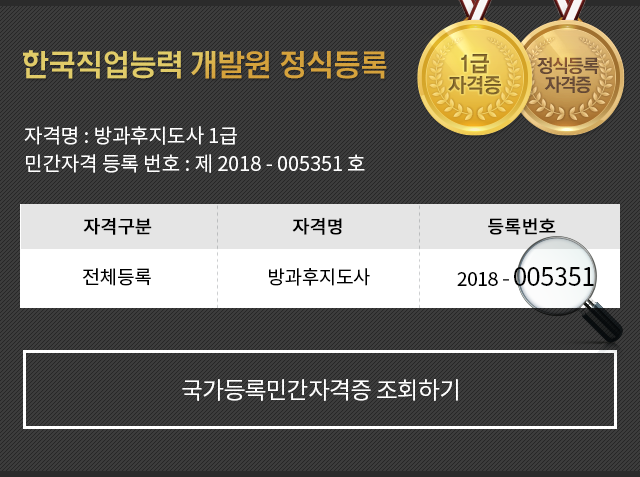 • ¹æ°úÈÄÁöµµ»ç Ȱµ¿À» À§ÇÑ ÀÚ°ÝÃëµæ°úÁ¤À» ÅëÇØ ¹æ°úÈÄ ±³À°ÀÇ À̷аú Áö½ÄÀ» ½ÀµæÇϰí, ´Ù¾çÇÑ ¾Æµ¿Áöµµ Ȱ¿ë¹æ¹ýÀ» üµæ½ÃÄÑ ¹æ°úÈÄÁöµµ»ç·Î¼­ÀÇ ±âÃÊÀûÀÎ Á÷¹«¼öÇà ´É·ÂÀ» ¹è¾çÇÏ´Â °ÍÀ» ¸ñÇ¥·Î ÇÕ´Ï´Ù.