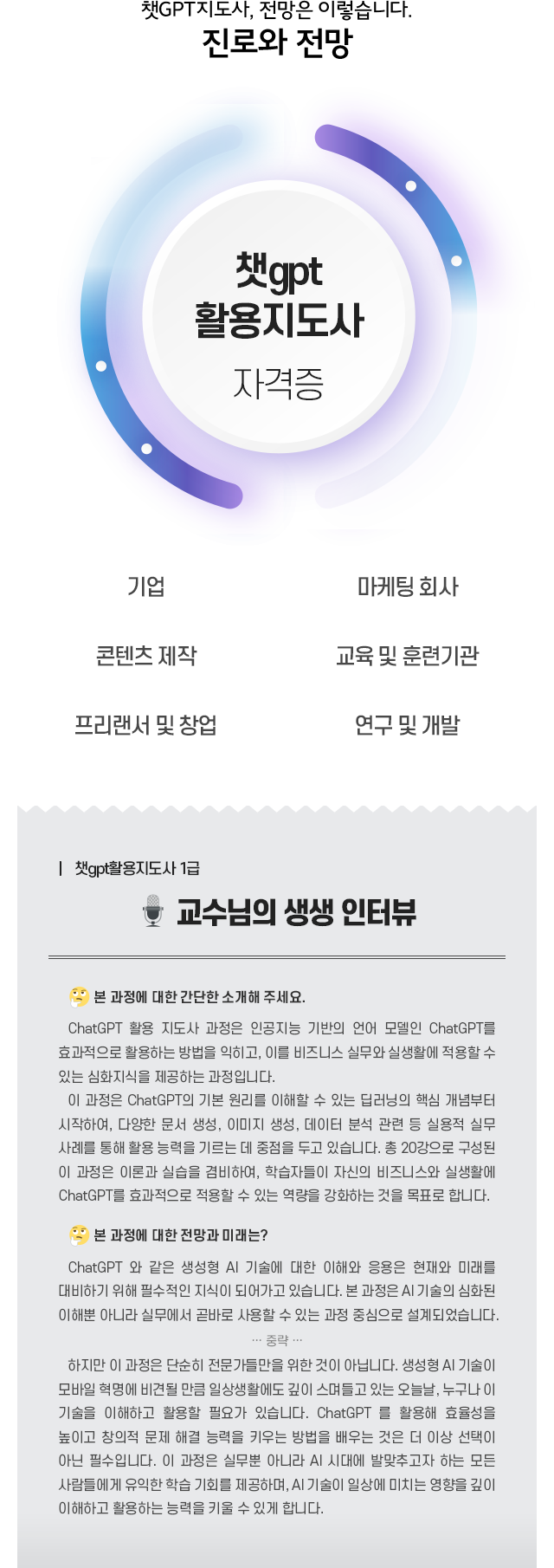 4. ´Ù¾çÇÑ ½Ç½ÀÀ» ÅëÇØ ChatGPT¿Í »ý¼ºÇü AIÀÇ ½ÇÁ¦ Àû¿ë »ç·Ê¸¦ °æÇèÇϰí, Ä¿½ºÅ͸¶ÀÌ¡ ¹× µ¥ÀÌÅÍ ºÐ¼® ±â¼úÀ» ¿¬¸¶ÇÒ ¼ö ÀÖ´Ù.