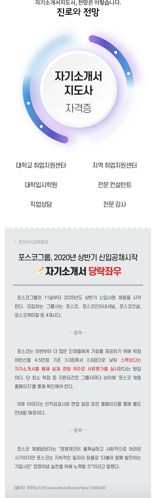 • Áö¿øÀÚ°¡ ÀÛ¼ºÇÏ¿´°Å³ª ÀÛ¼ºÇϰíÀÚ ÇÏ´Â ÀÚ±â¼Ò°³¼­ ³»¿ëÀ» Æò°¡ÇÑ ÈÄ ÇÊ¿ä ½Ã °³¼±¹æ¾ÈÀ» Á¦½ÃÇϰí Áöµµ¡¤°­ÀÇÇÒ ¼ö ÀÖ´Â Àü¹®°¡·Î¼­ÀÇ Áö½Ä°ú ´É·ÂÀ» °®Ãá´Ù.