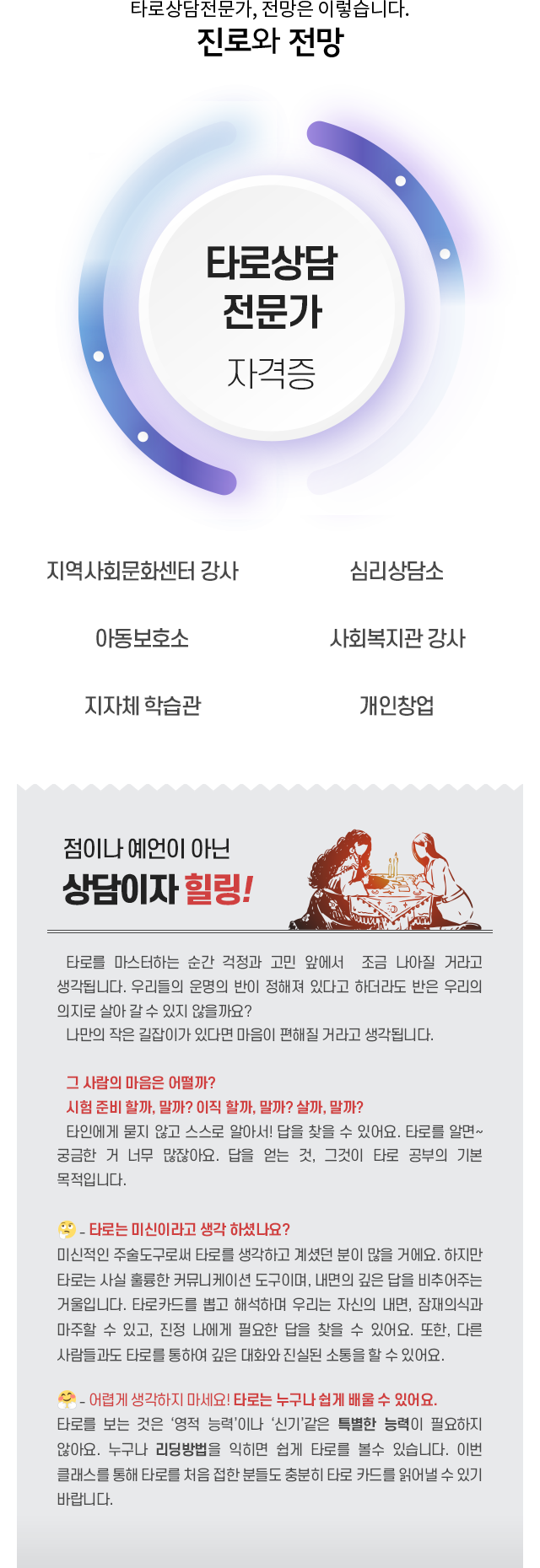 Ÿ·Î Ä«µå¸¦ ÅëÇÏ¿© Áú¹®ÀÚ°¡ ±Ã±ÝÇØ ÇÏ´Â ¸ðµç Àϵ鿡 ´ëÇÏ¿© »ó´ãÀ» Çϰí 78ÀåÀÇ ±æÈä Ⱥ¹, ½É¸®ÀûÀÎ ³»¿ëÀ» ´ã¾Æ ½É¸®Àû ¾ÈÁ¤°ú Èú¸µÀÌ µÉ ¼ö ÀÖ´Â ¹æ¹ýÀ» Á¦½ÃÇÏ´Â Àü¹®°¡ÀÔ´Ï´Ù.